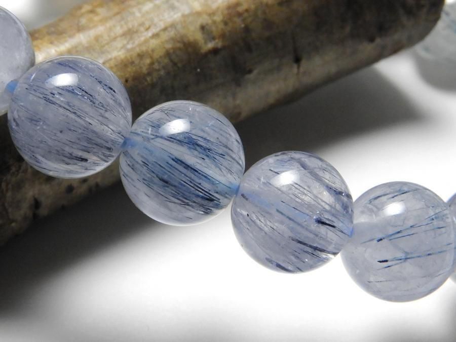 インディコライトのインクルージョンにより藍色〜青灰色になった水晶です。主な産地はブラジルとアフガニスタンです。針状結晶が明瞭に見えるものは俗に「ブルールチル」とも呼ばれます。