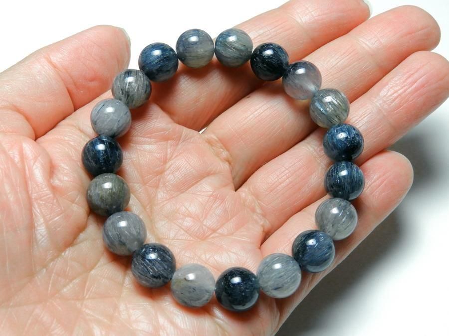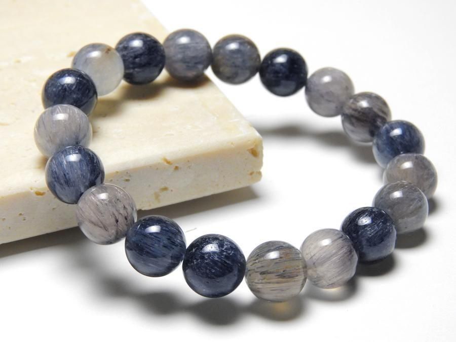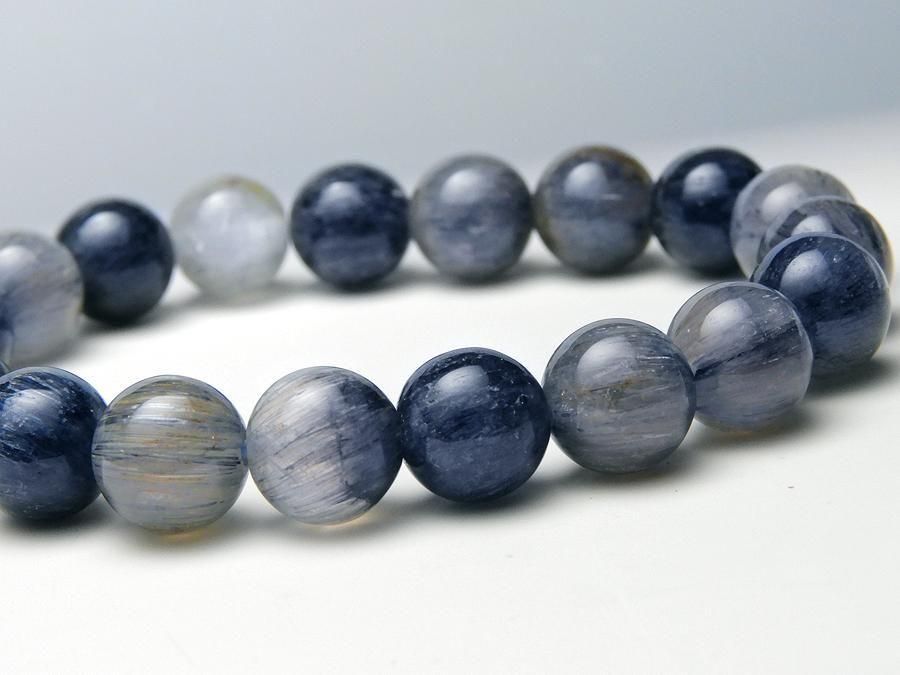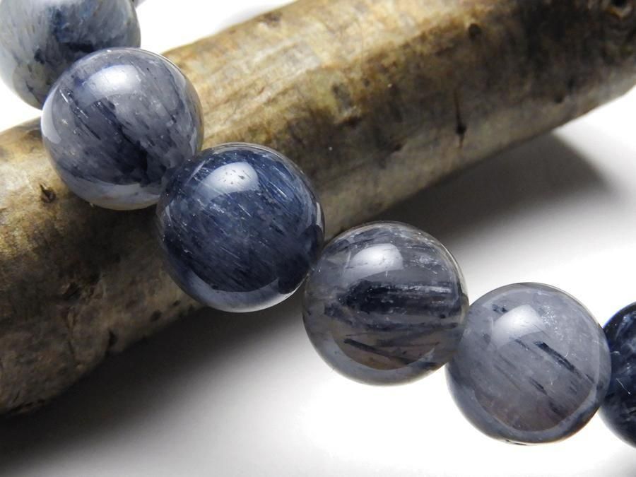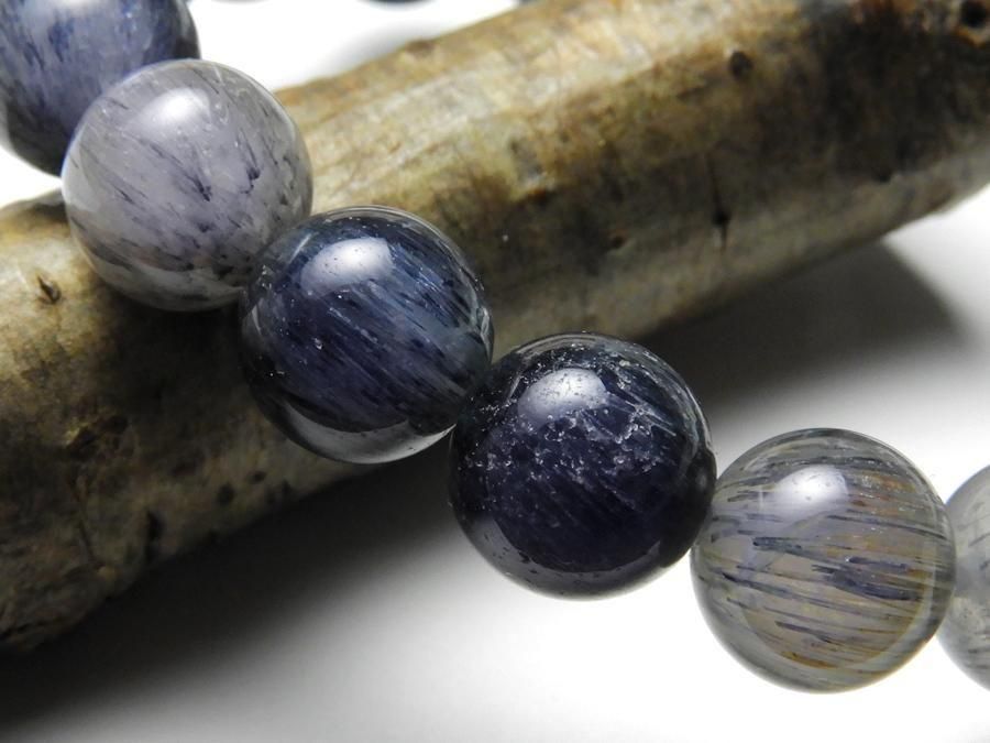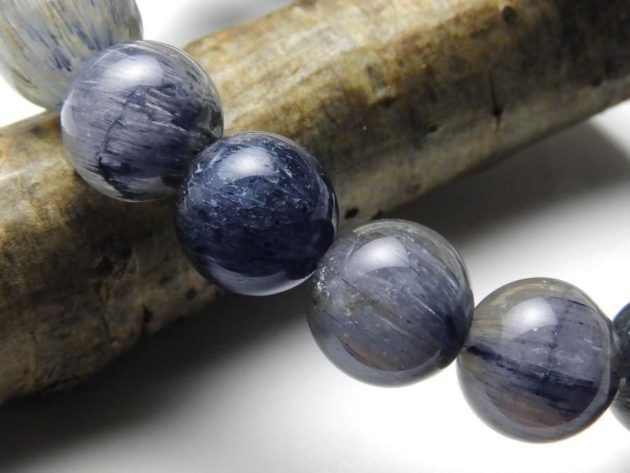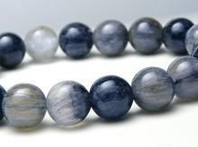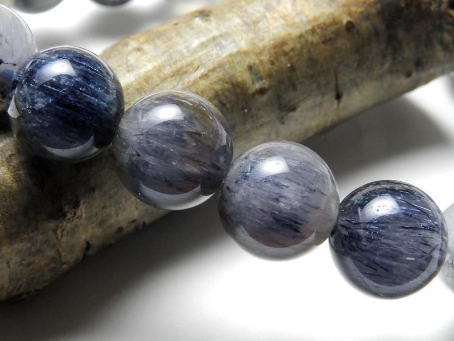 インディコライトのインクルージョンにより藍色〜青灰色になった水晶です。主な産地はブラジルとアフガニスタンです。針状結晶が明瞭に見えるものは俗に「ブルールチル」とも呼ばれます。