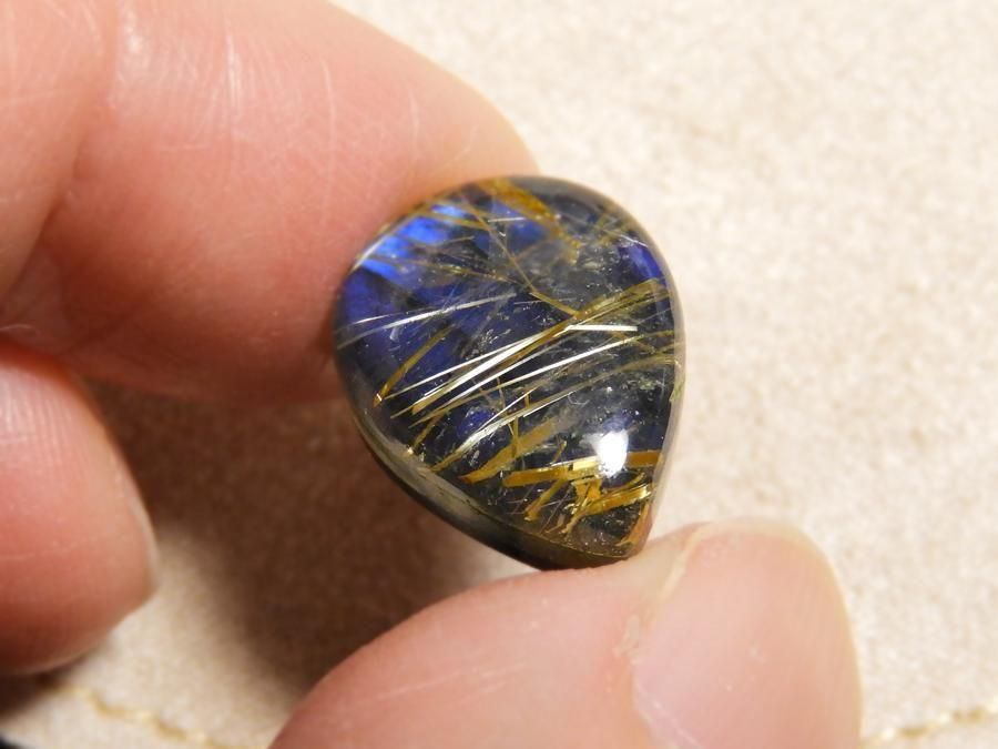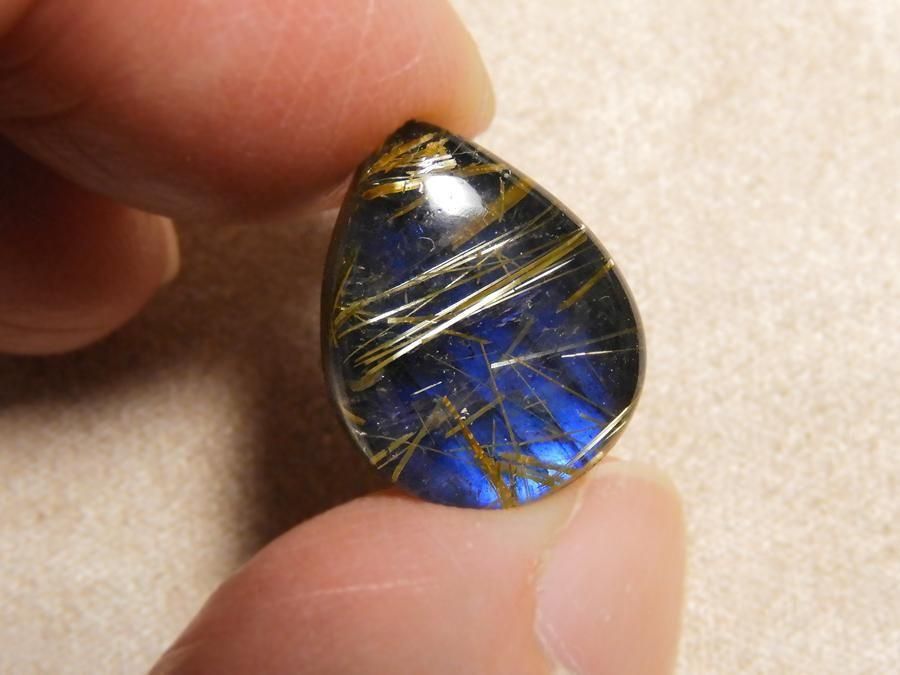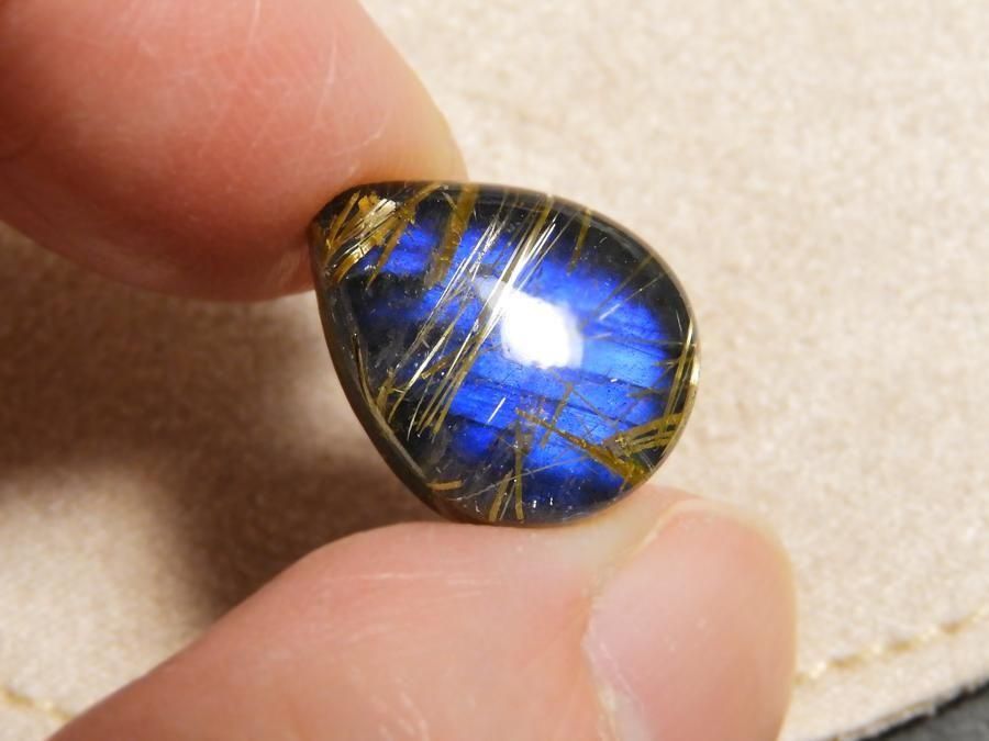 ゴールドルチルクォーツ+ラブラドライト|カボション|15×12×6.5mm 9.4ct|No.2