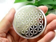 神聖幾何学エナジープレート セレナイト(ジプサム)+フラワーオブライフ(ネガ) サイズ: 58×58×5mm