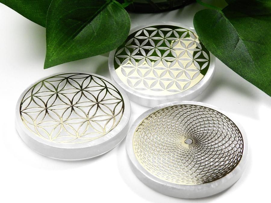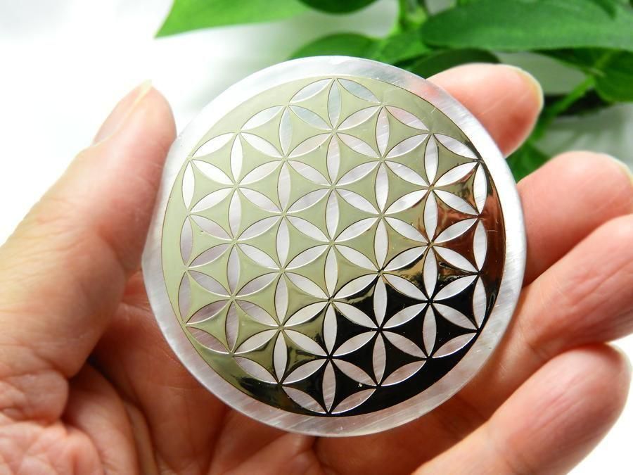 神聖幾何学エナジープレート|セレナイト+フラワーオブライフ(ネガ)