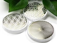 フラワーオブライフは生命の創造パターンを表した図形です。ポジのプレートはヒーリングに、ネガのプレートは浄化に適しています。