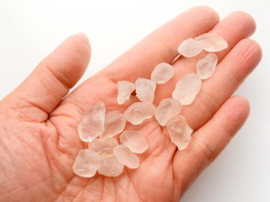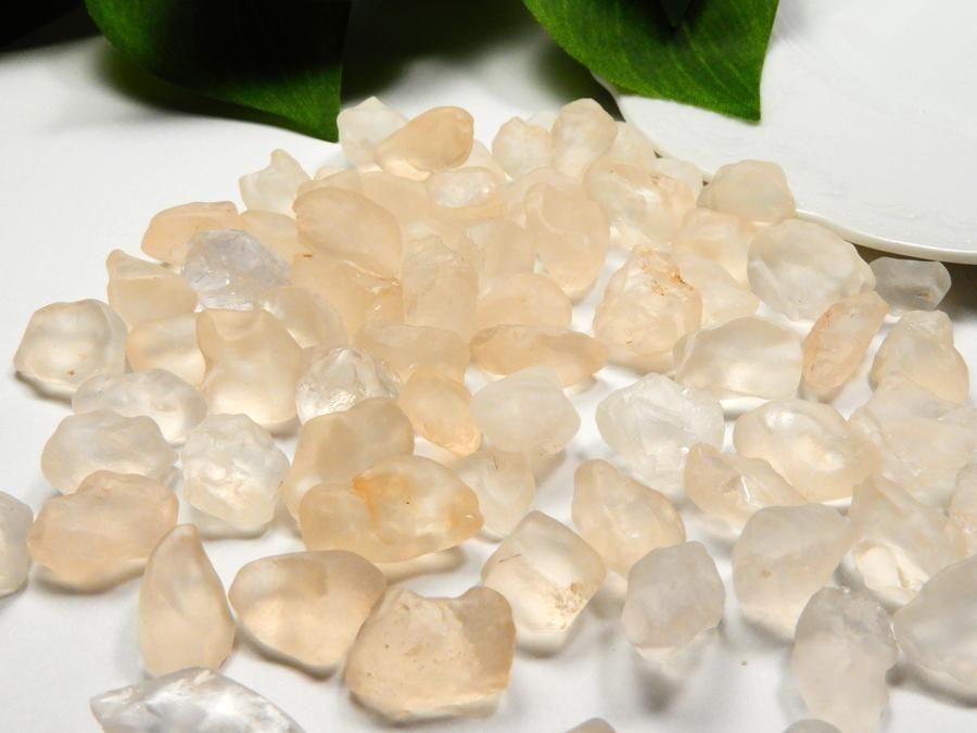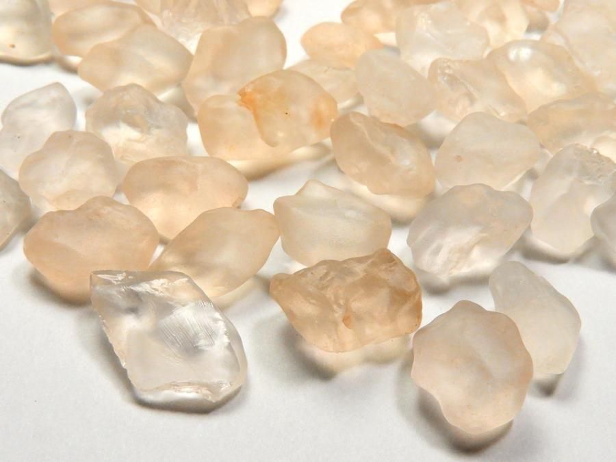 天然・未加工の原石です。風雨により浸食されシーグラスのようなマットな手触りになっているのが特徴です。鉄分の影響で表面は薄いピンクに色付いていますが、内側は無色透明な水晶です。