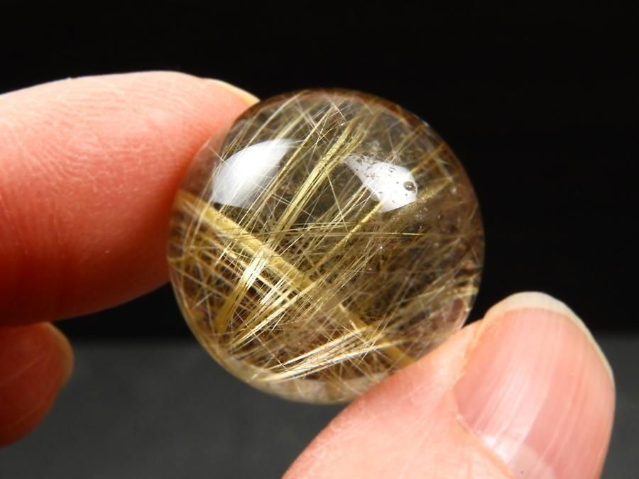 透明度抜群の宝石質ゴールドルチルクォーツです。繊細な金針がキラキラ輝きます。針色は明るめでわずかにスモーキーな丸玉です。