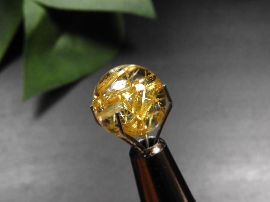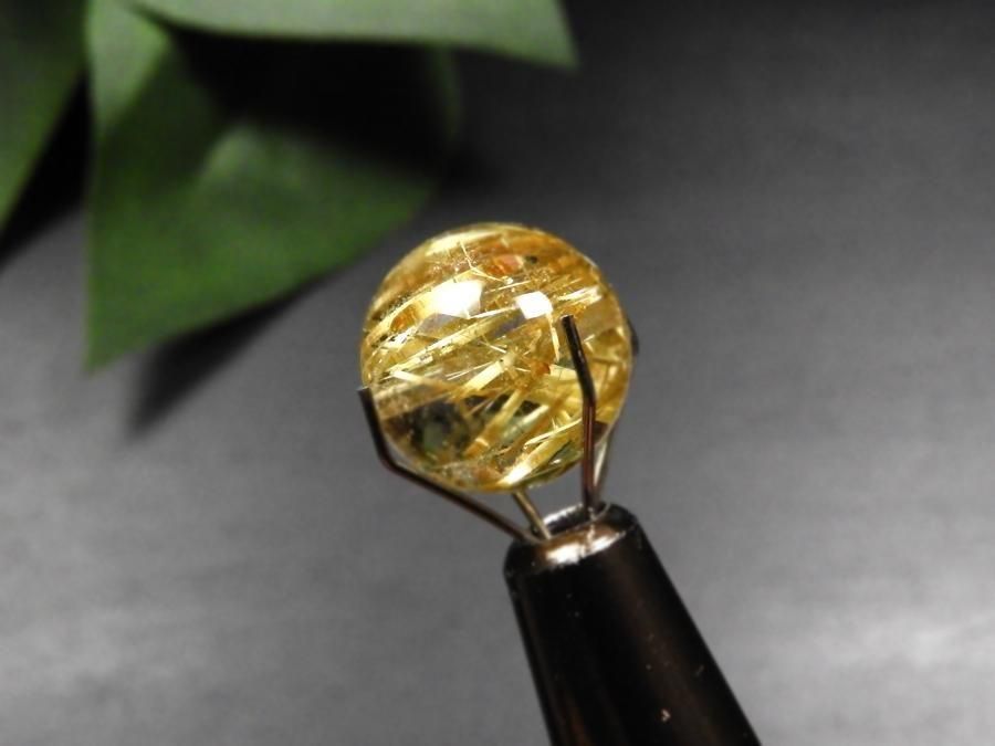 宝石質ゴールドルチルクォーツ|双晶 10.5mm|粒売りビーズ No.18